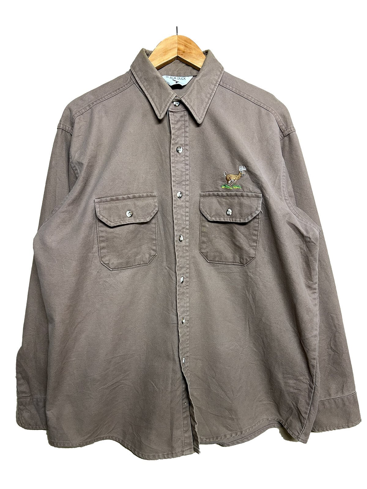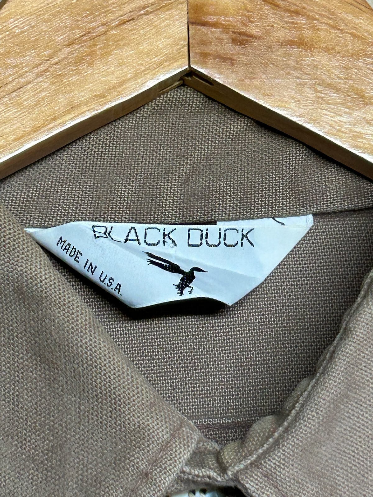 BLACK DUCK(ブラックダック)は、アメリカのワークウェアやアパレルを扱うブランドで、主に厚手のダック生地を用いたシャモアシャツやジャケットなど、耐久性の高いカジュアルな製品を展開しています。1960年代にはファイヤーマンコートなどを製造しており、味のある経年変化が特徴です。
