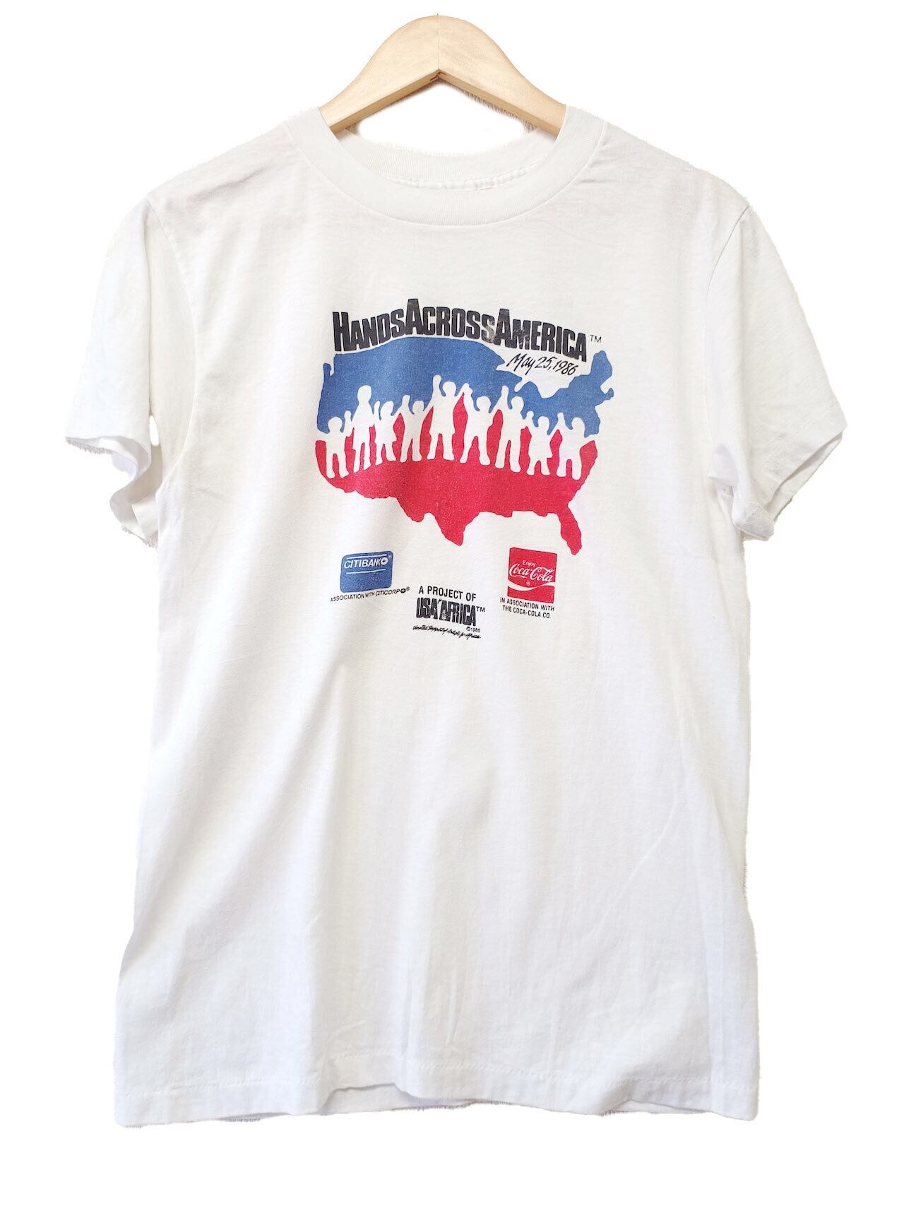 1986年にアメリカで始まったチャリティーイベント「ハンズ・アクロス・アメリカ」のプリントが入ったTシャツです。